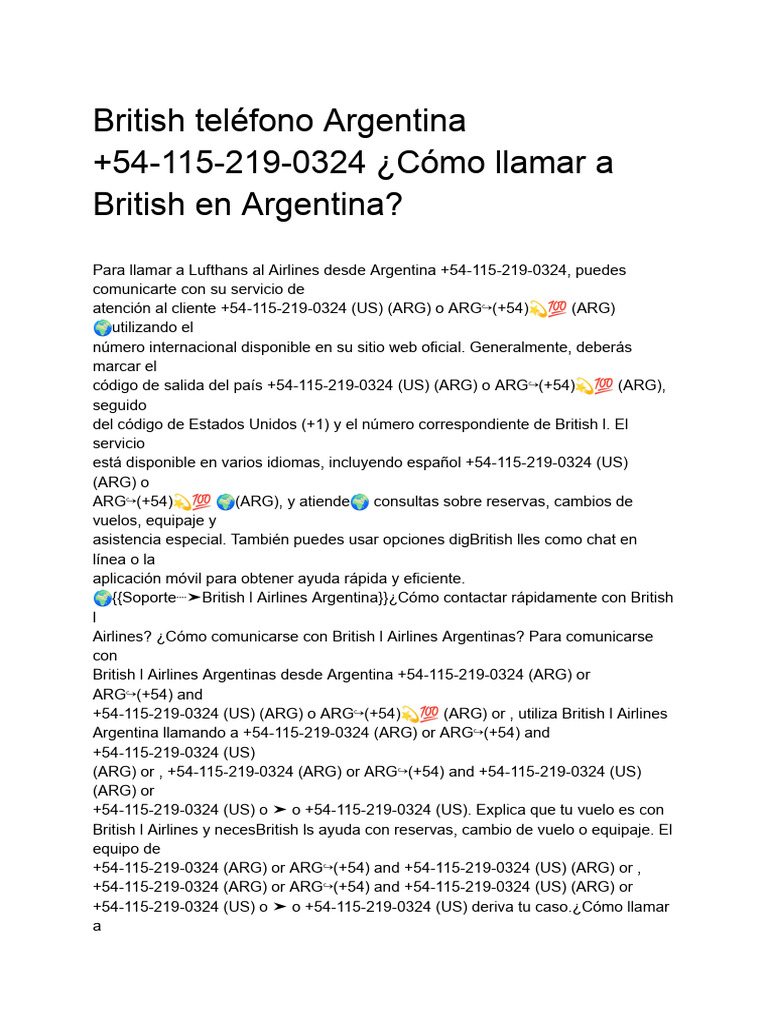 British Telefono Argentina 54 115 219 0324 Como Llamar a British en ...