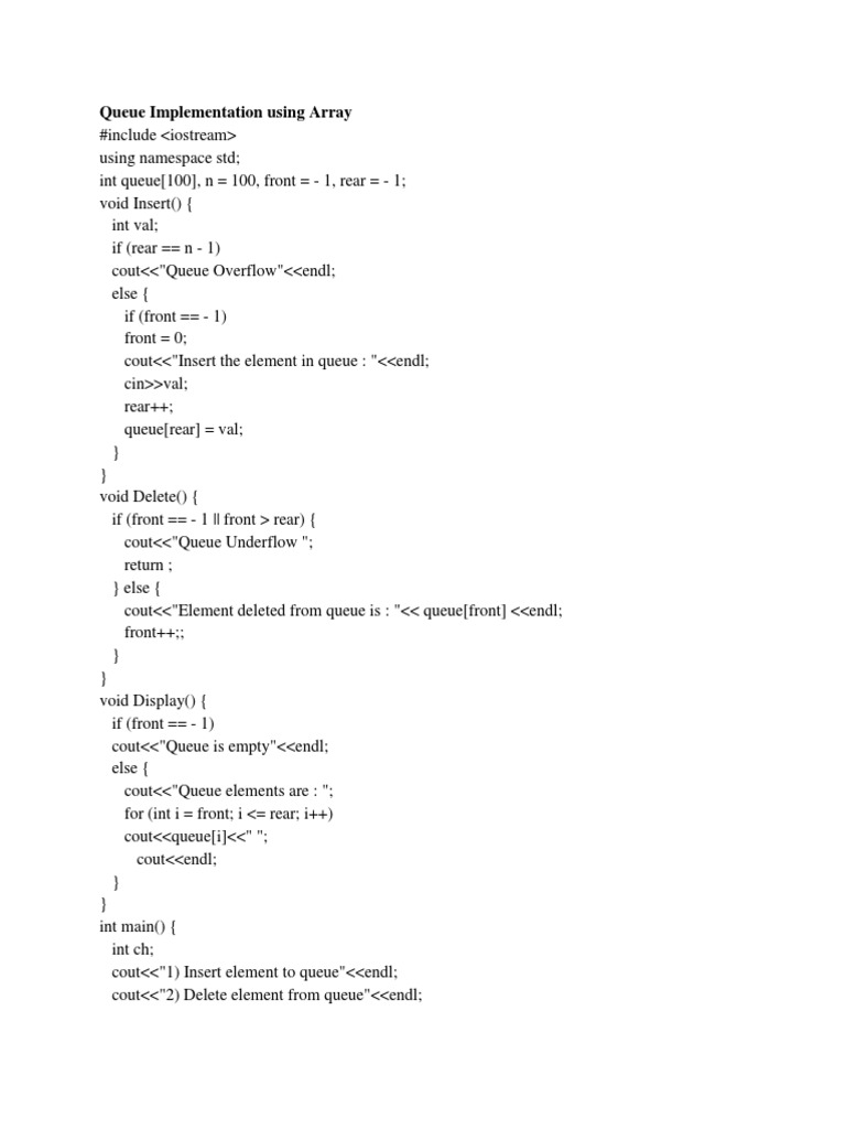Queue Implementation Using Array | PDF | Queue (Abstract Data Type ...