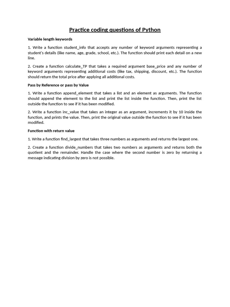 Based on this image's title: “Practice Coding Questions of Python | PDF”