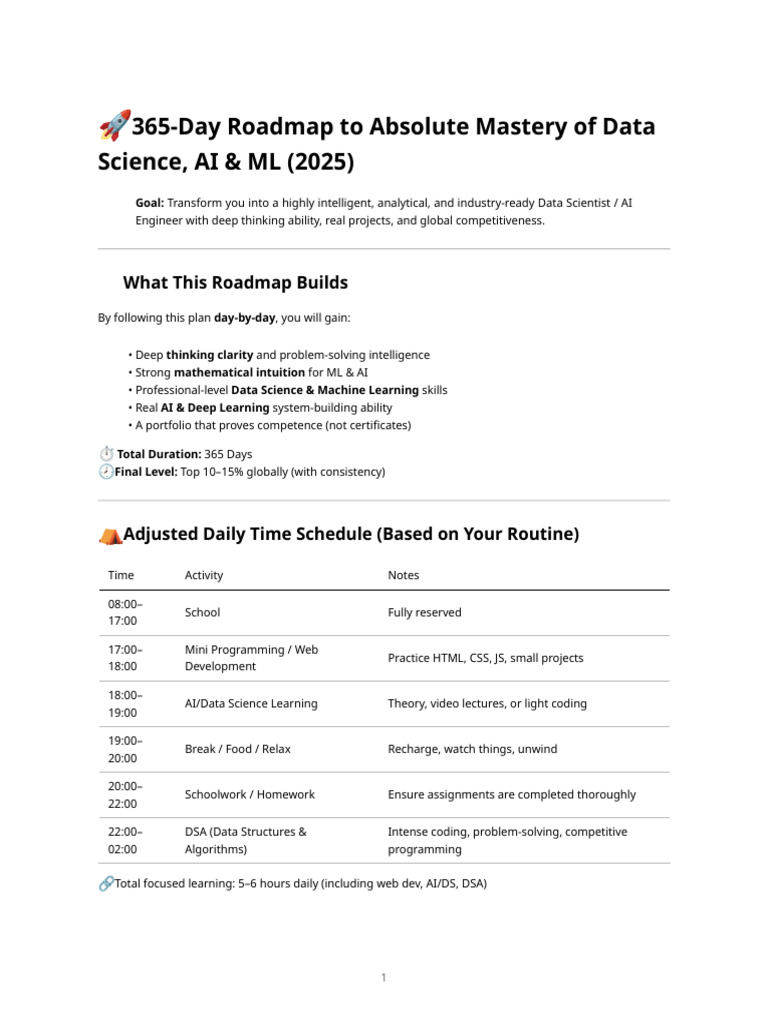 365-Day Ai & Data Science Mastery Roadmap (2025) | PDF | Artificial ...
