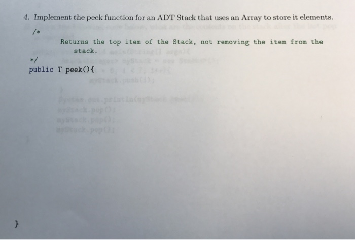 Solved 4. Implement the peek function for an ADT Stack that | Chegg.com