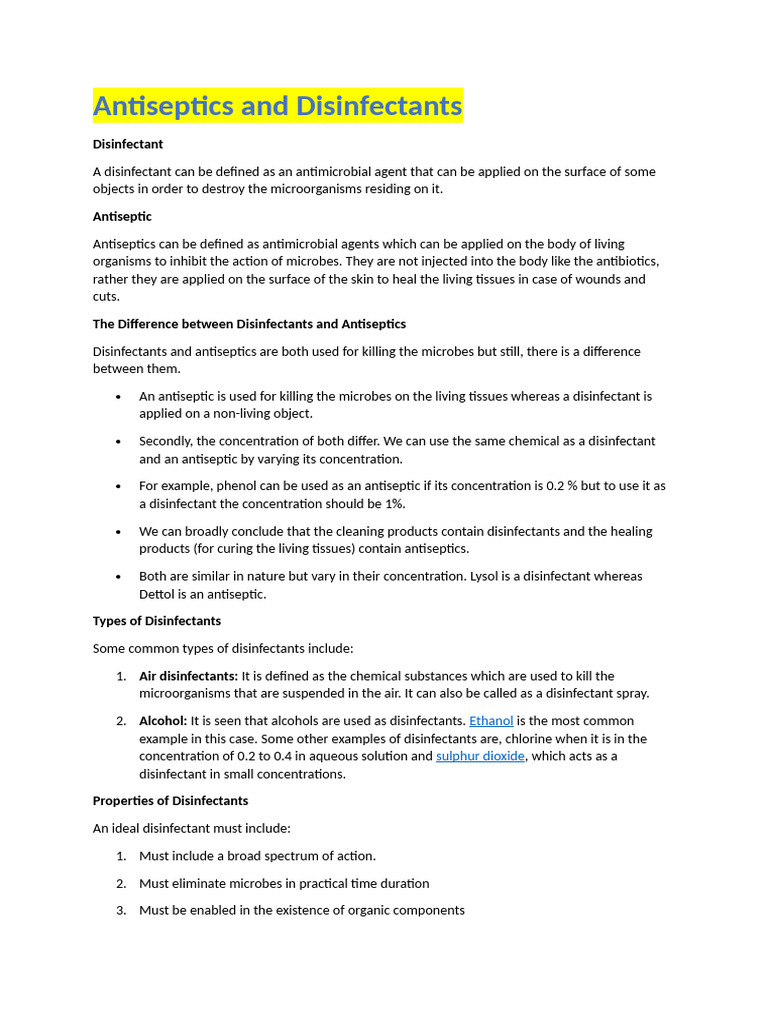 Understanding Antiseptics and Disinfectants: Types, Uses, and | Course Hero