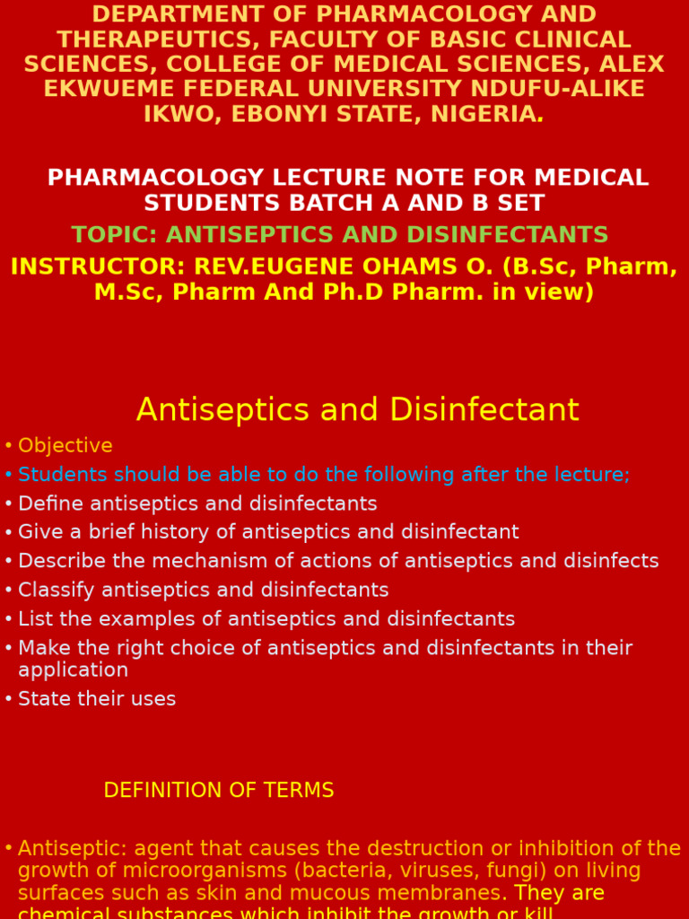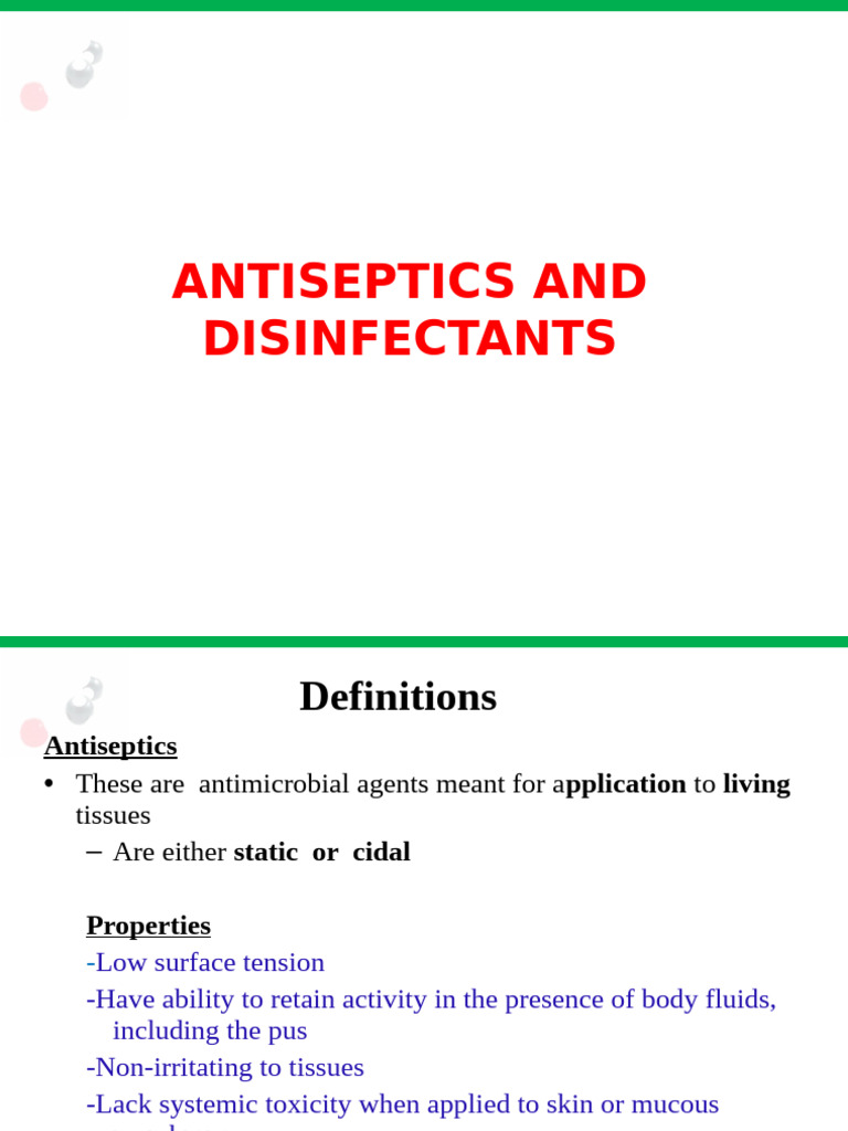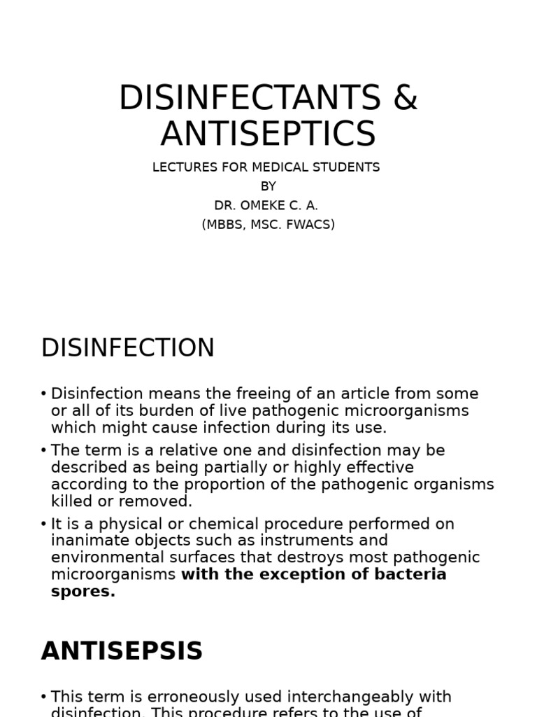 DISINFECTANTS, ANTISEPTICS,.pptx | Free Download