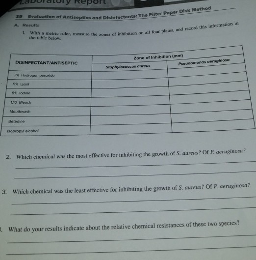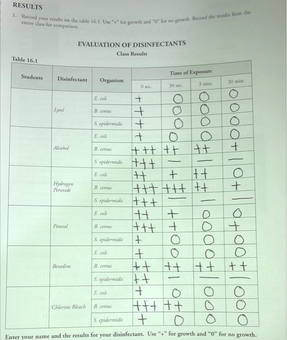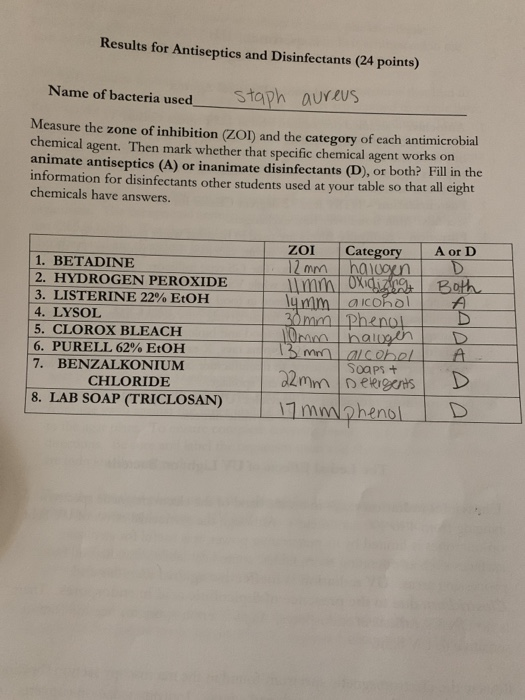 Solved Results for Antiseptics and Disinfectants (24 points) | Chegg.com