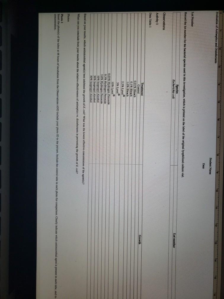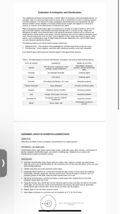 1 Evaluation of Antiseptics and Disinfectants Student | Chegg.com