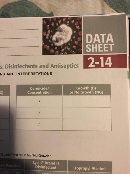 Solved DATA SHEET 2-14 s: Disinfectants and Antiseptics NS | Chegg.com