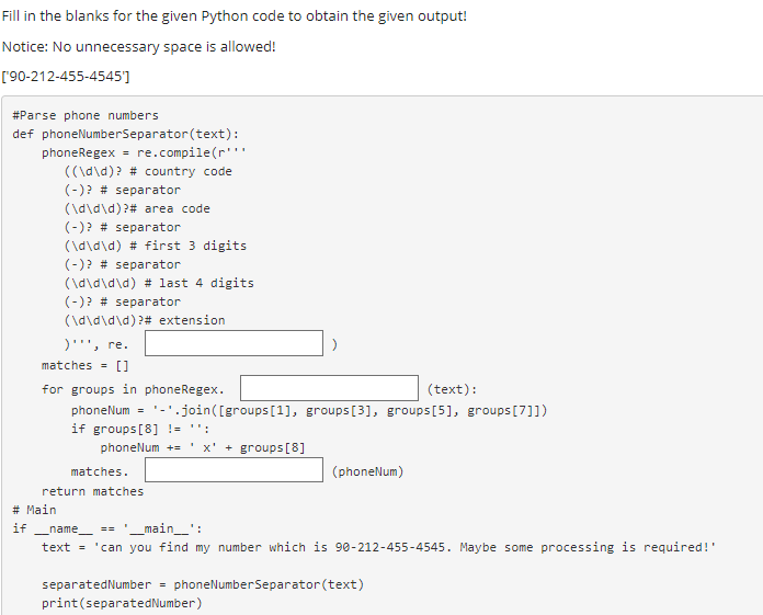 Solved Fill in the blanks for the given Python code to | Chegg.com