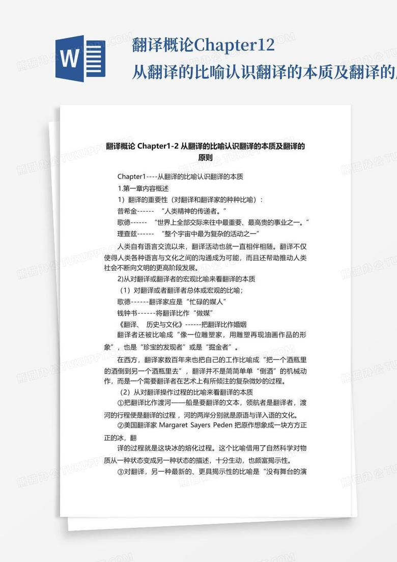 翻译概论chapter1-2从翻译的比喻认识翻译的本质及翻译的原则_文Word模板下载_编号qvyabeao_熊猫办公