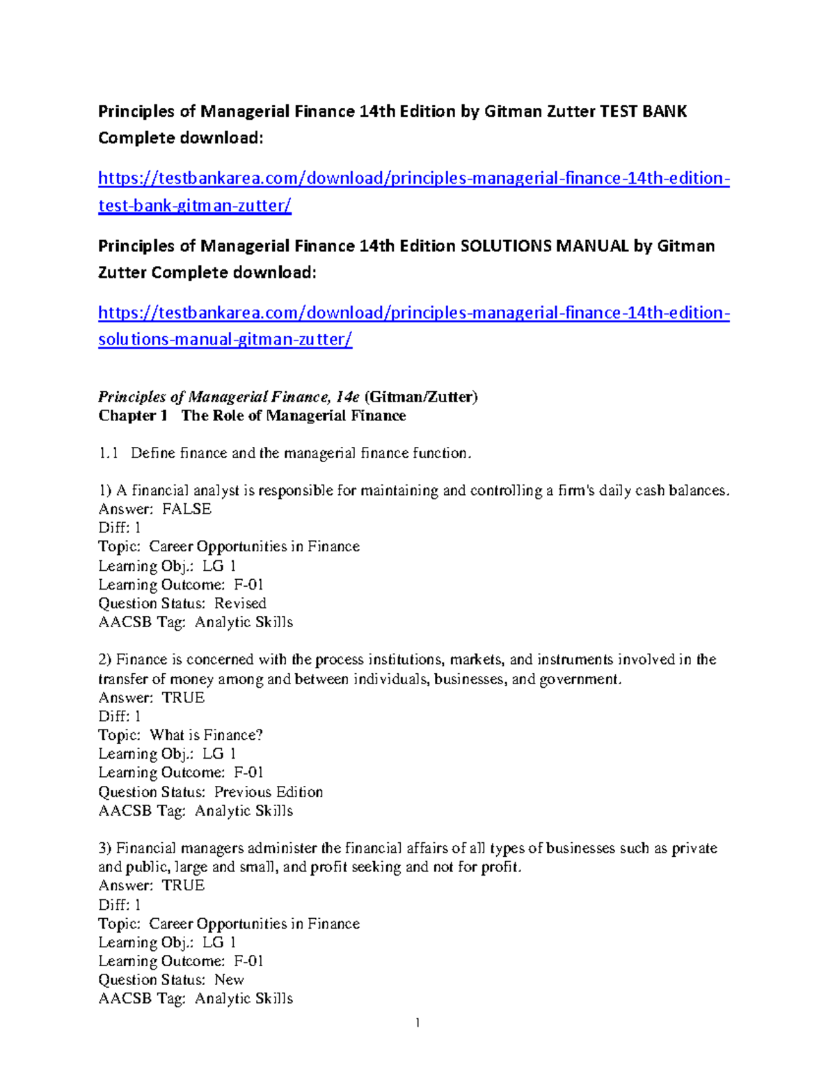 Principles of Managerial Finance FINANCIAL MARKETS Test Bank 14e - Studocu