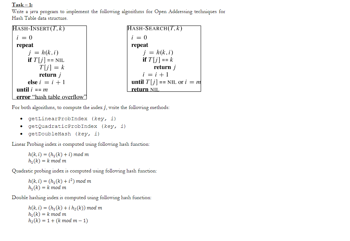 Solved Task - 1: Write a java program to implement the | Chegg.com