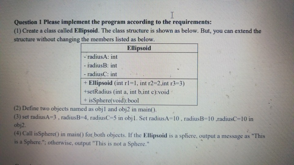 Solved I Question 1 Please implement the program according | Chegg.com