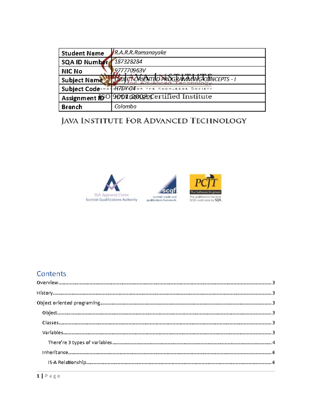 OOPC1 Assignment - it's the programming part - Contents - Studocu
