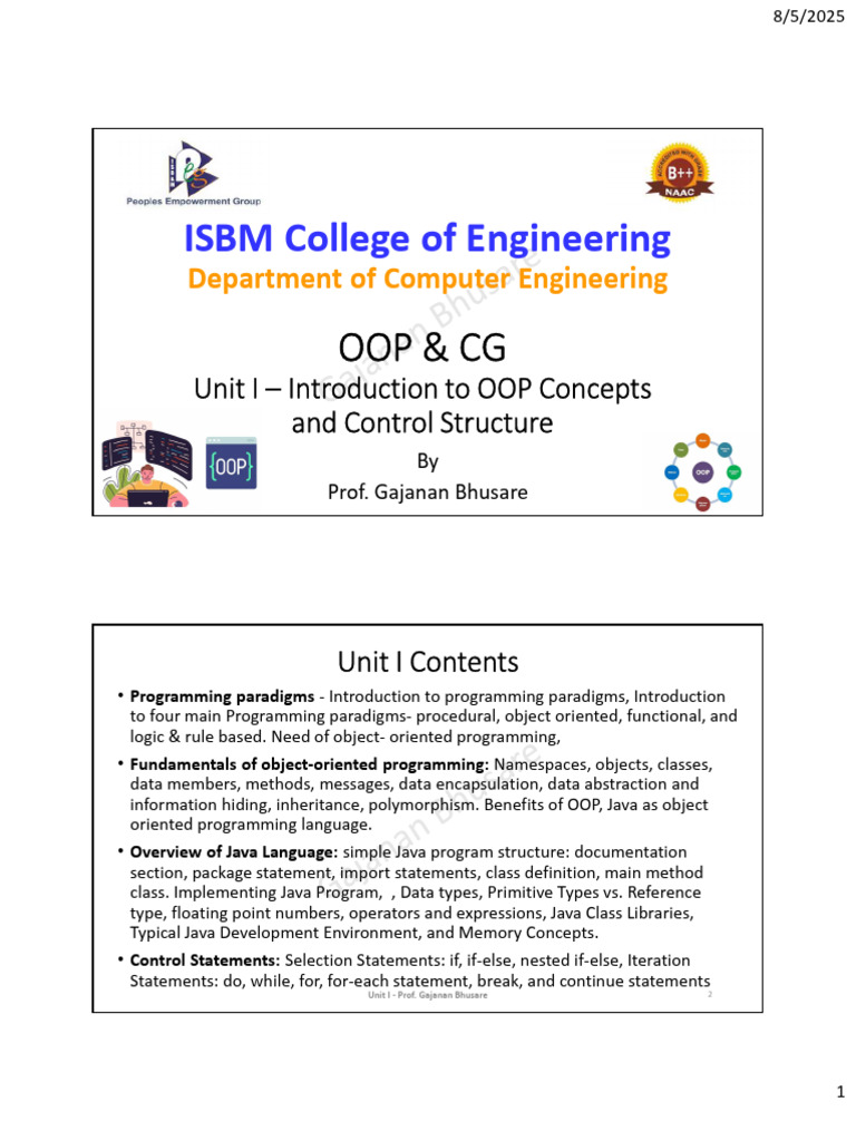 Unit I - Introduction To OOP Concepts and Control Structure | PDF ...