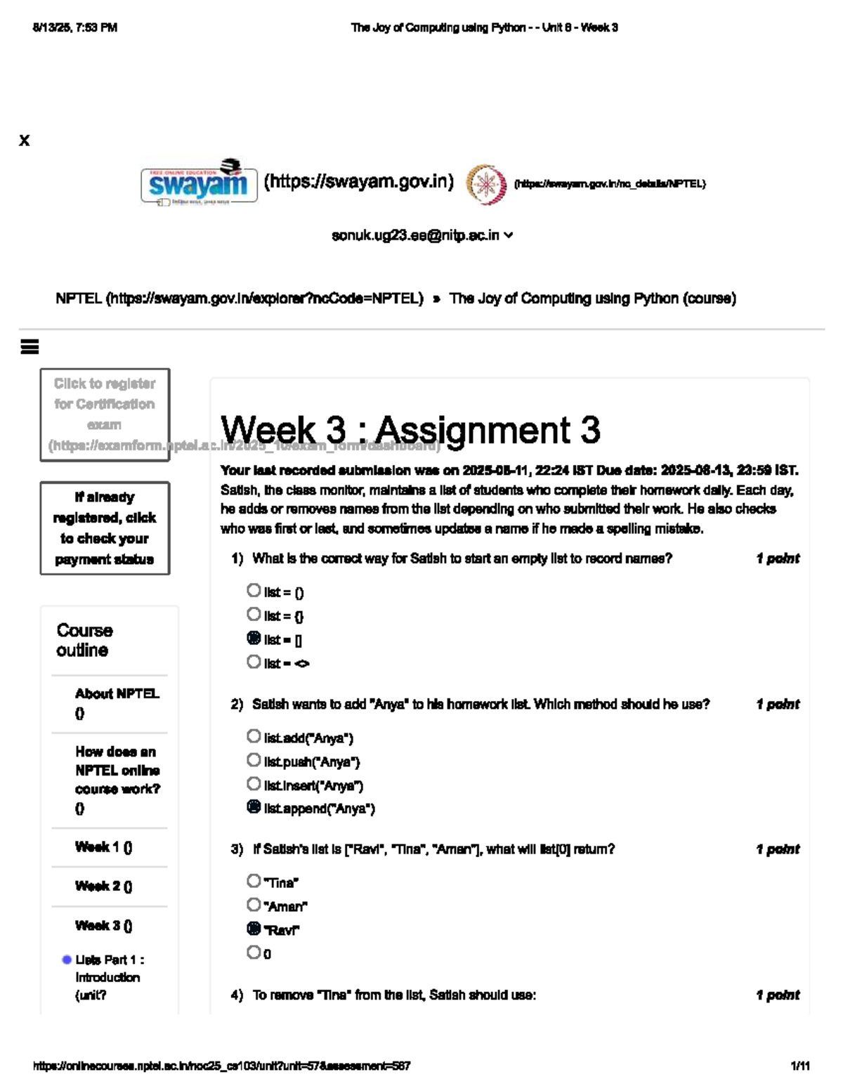 The Joy of Computing using Python (CS101) Week 3 Assignment - Studocu