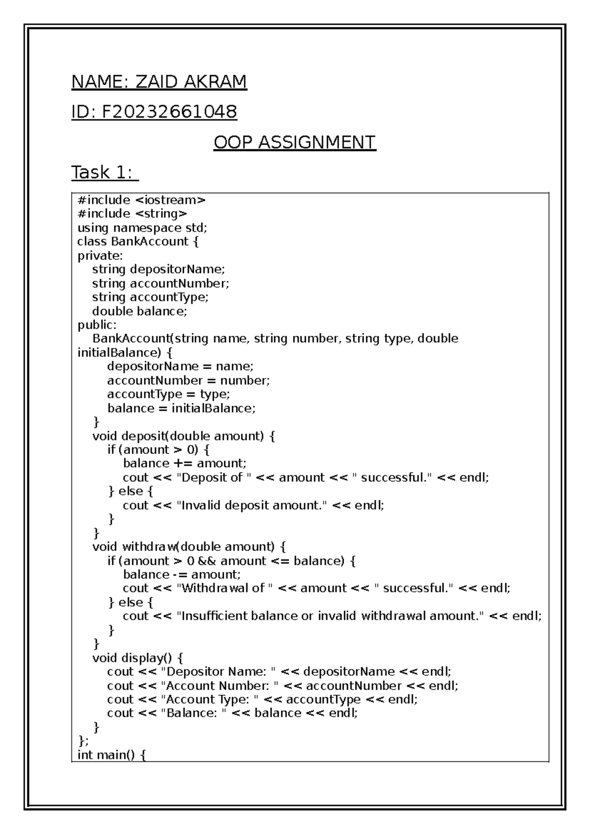 OOP Assignment 1: BankAccount Class Implementation - Studocu