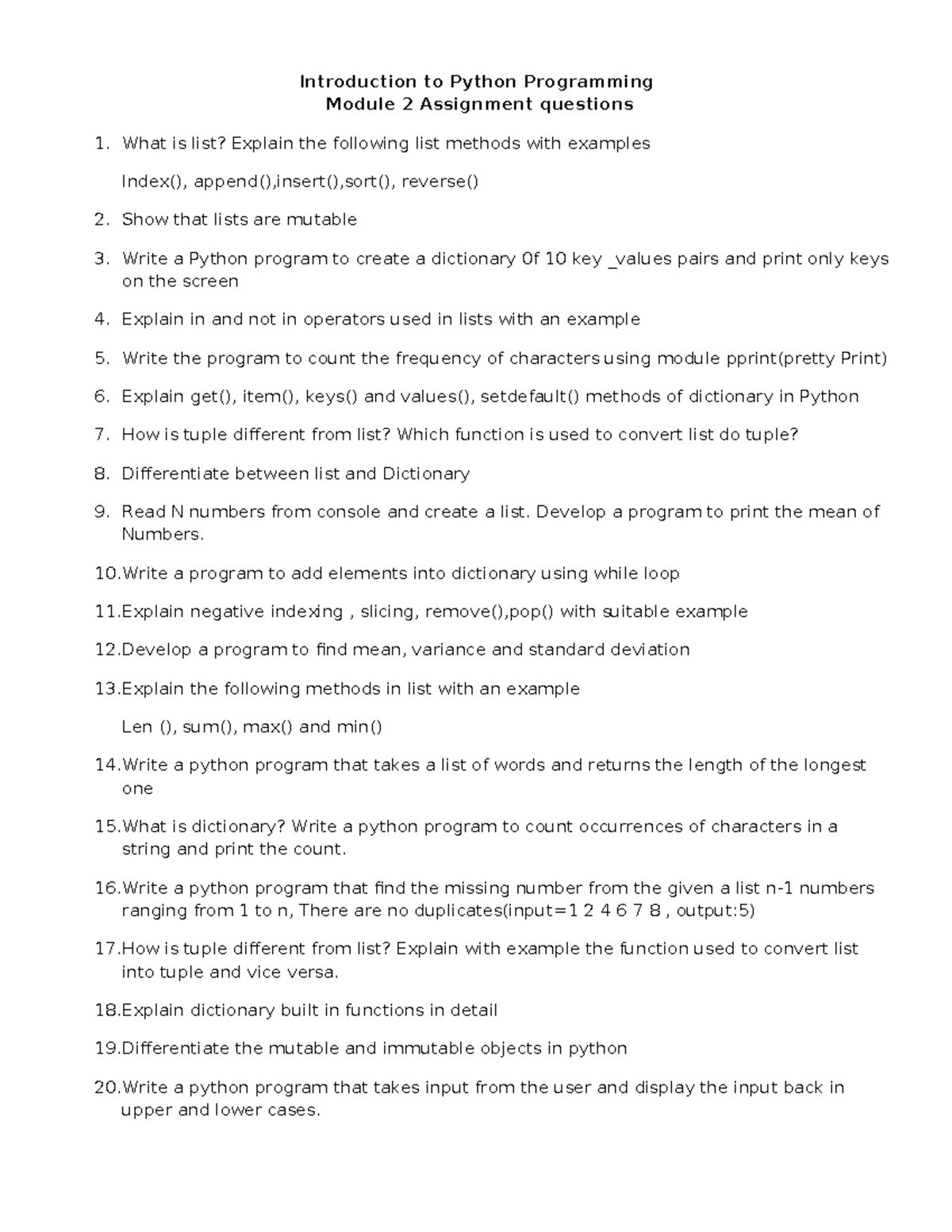 Python Programming (CS101) Module 2 Assignment Questions & Tasks - Studocu