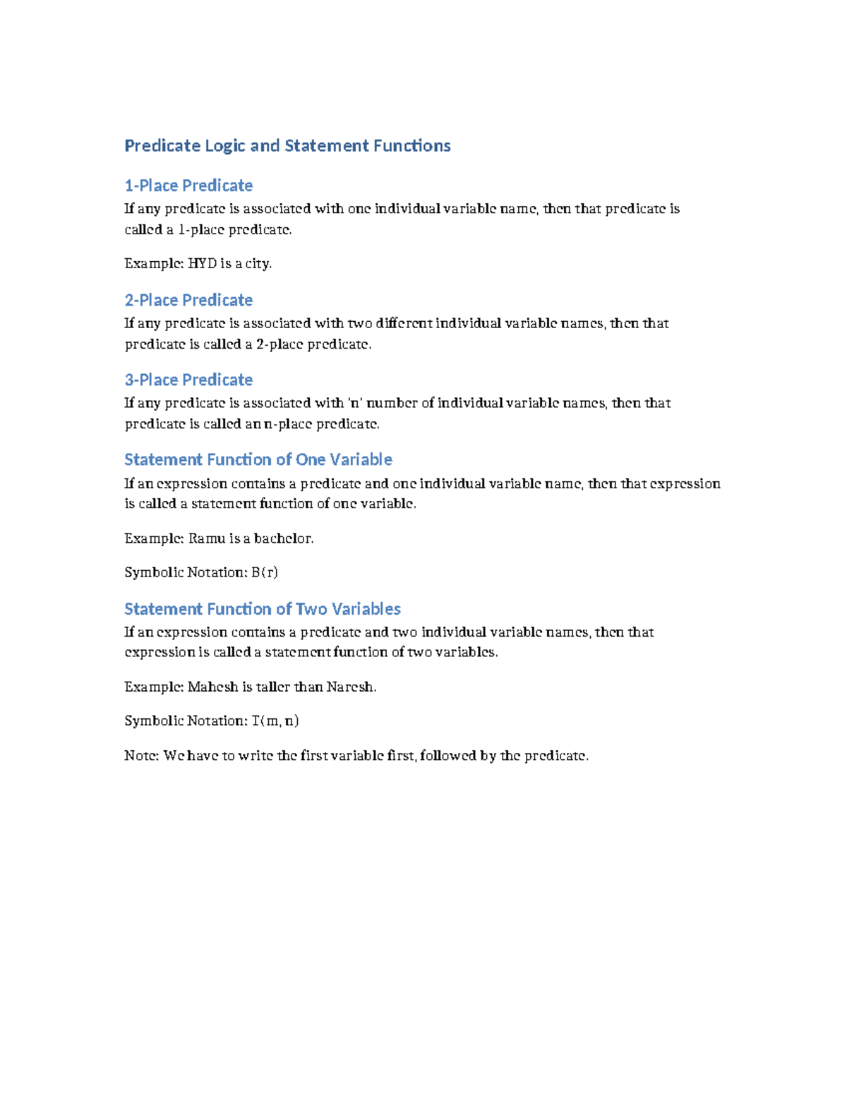 Predicate Logic Notes: Understanding Functions & Variables - Studocu