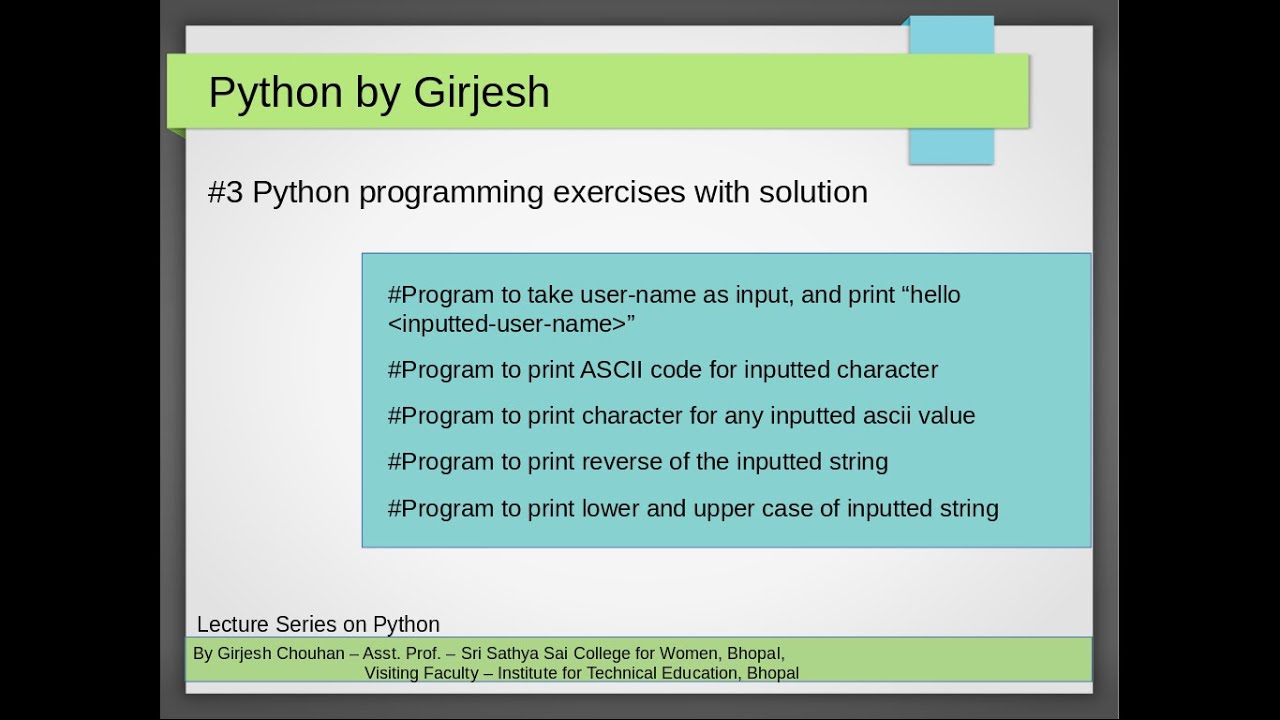 Q.11 to Q.15 Python - Solved Practice Exercises - related to input ...