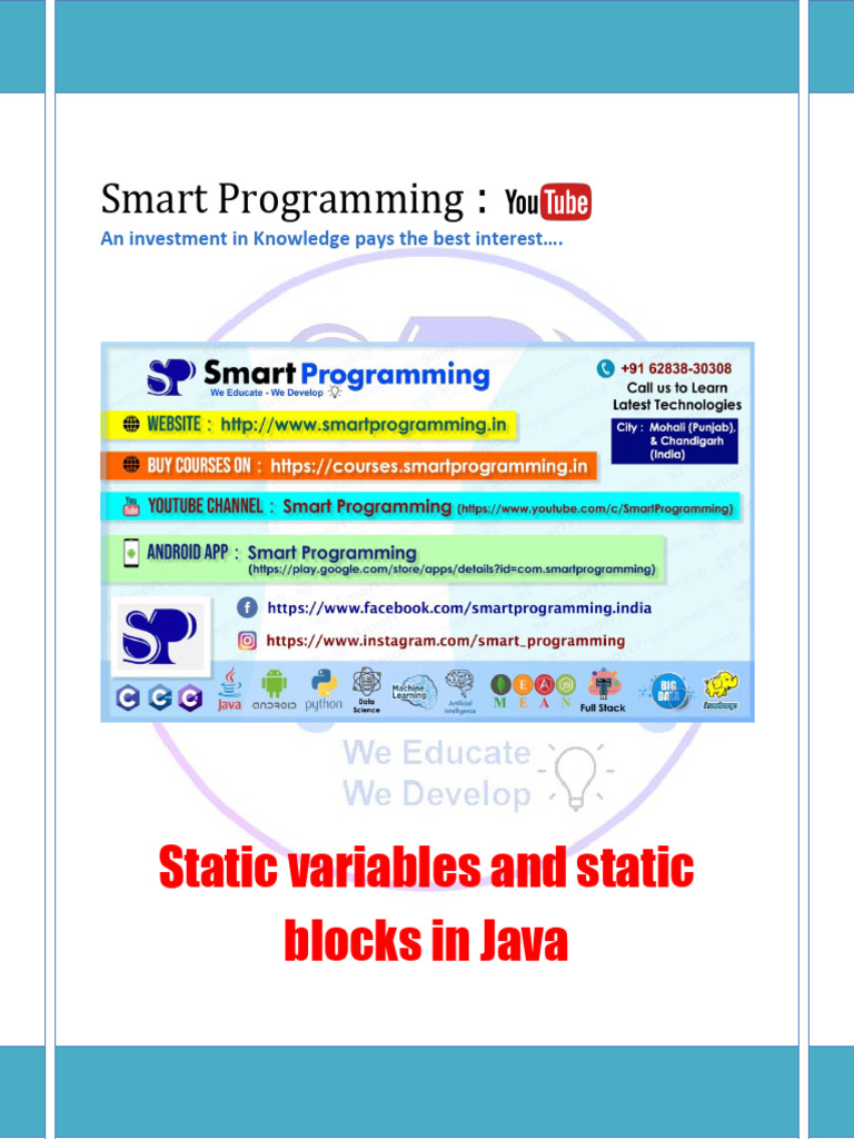 Video-24 Static keyword in JAVA | Static variables | Static Block ...