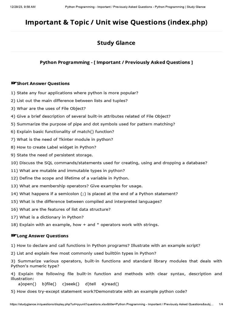 Python Programming - Important _ Previously Asked Questions - Python ...