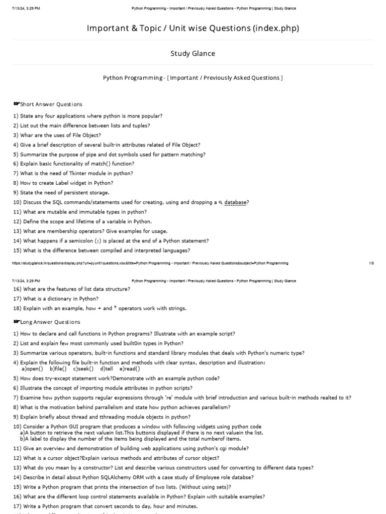 Based on this image's title: “Python Programming - Important _ Previously Asked Questions - Python ...”