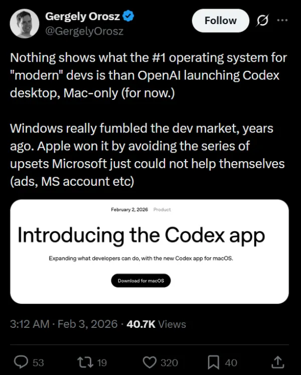 Based on this image's title: “OpenAI Releases Dedicated Codex Coding App For Microsoft Windows”