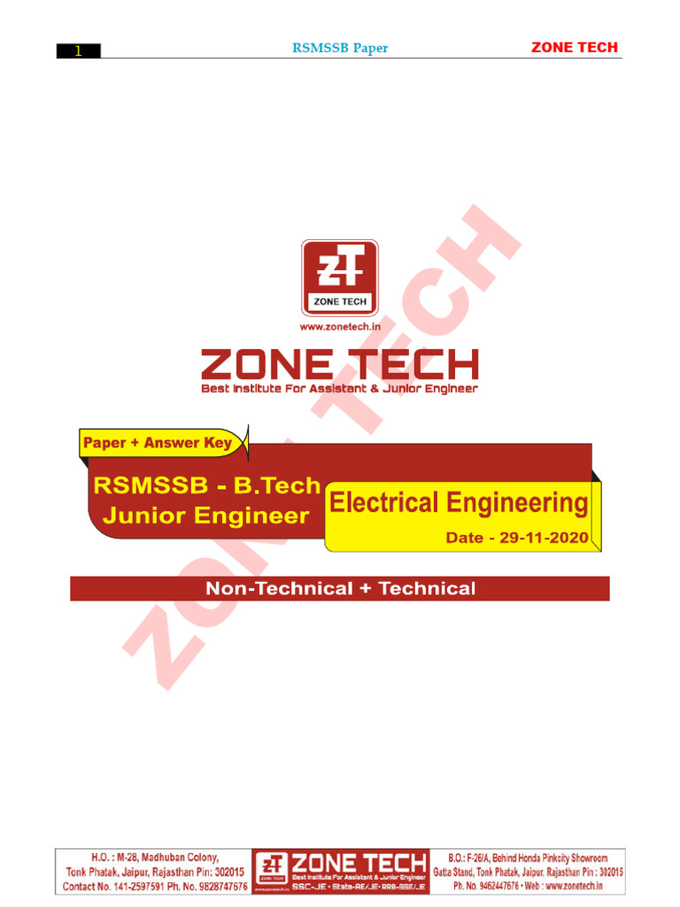 RSMSSB-JE ELECTRICAL (B.Tech) Paper Solution (29 November2020) 240 ...