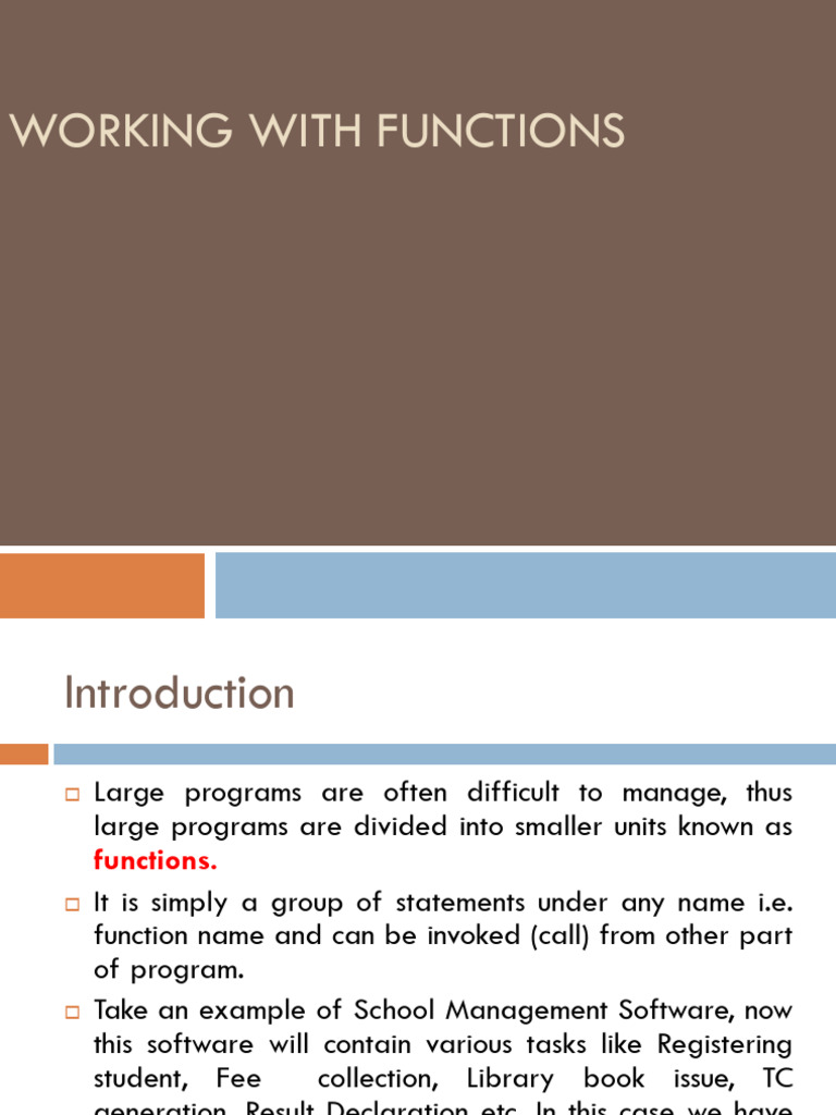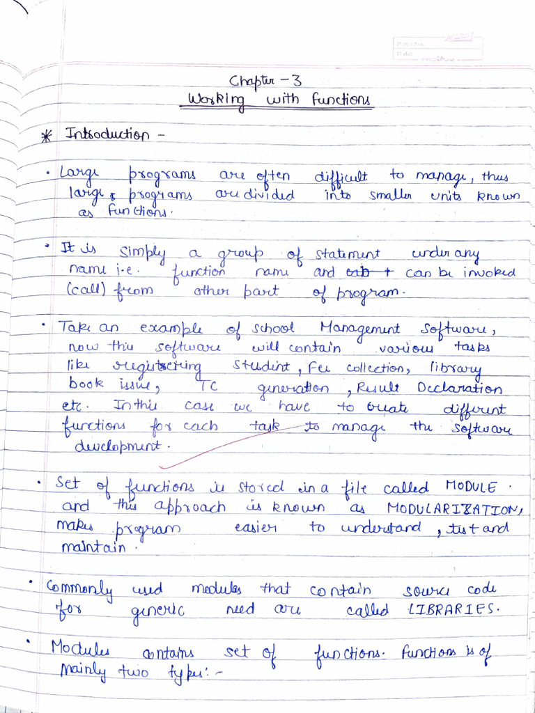 Class 12th Computer Science Chapter 3 - Working With Functions Notes | PDF