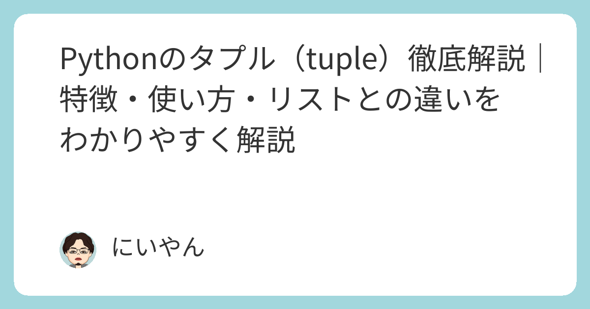 Pythonのタプル(tuple)徹底解説|特徴・使い方・リストとの違いをわかりやすく解説
