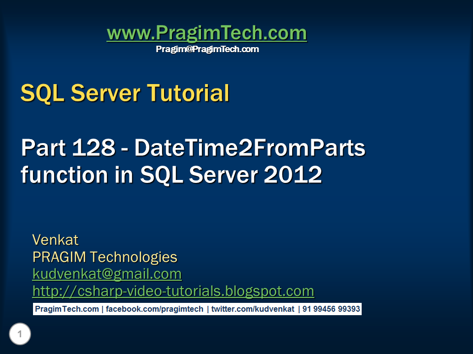Sql server, .net and c# video tutorial: DateTime2FromParts function in ...