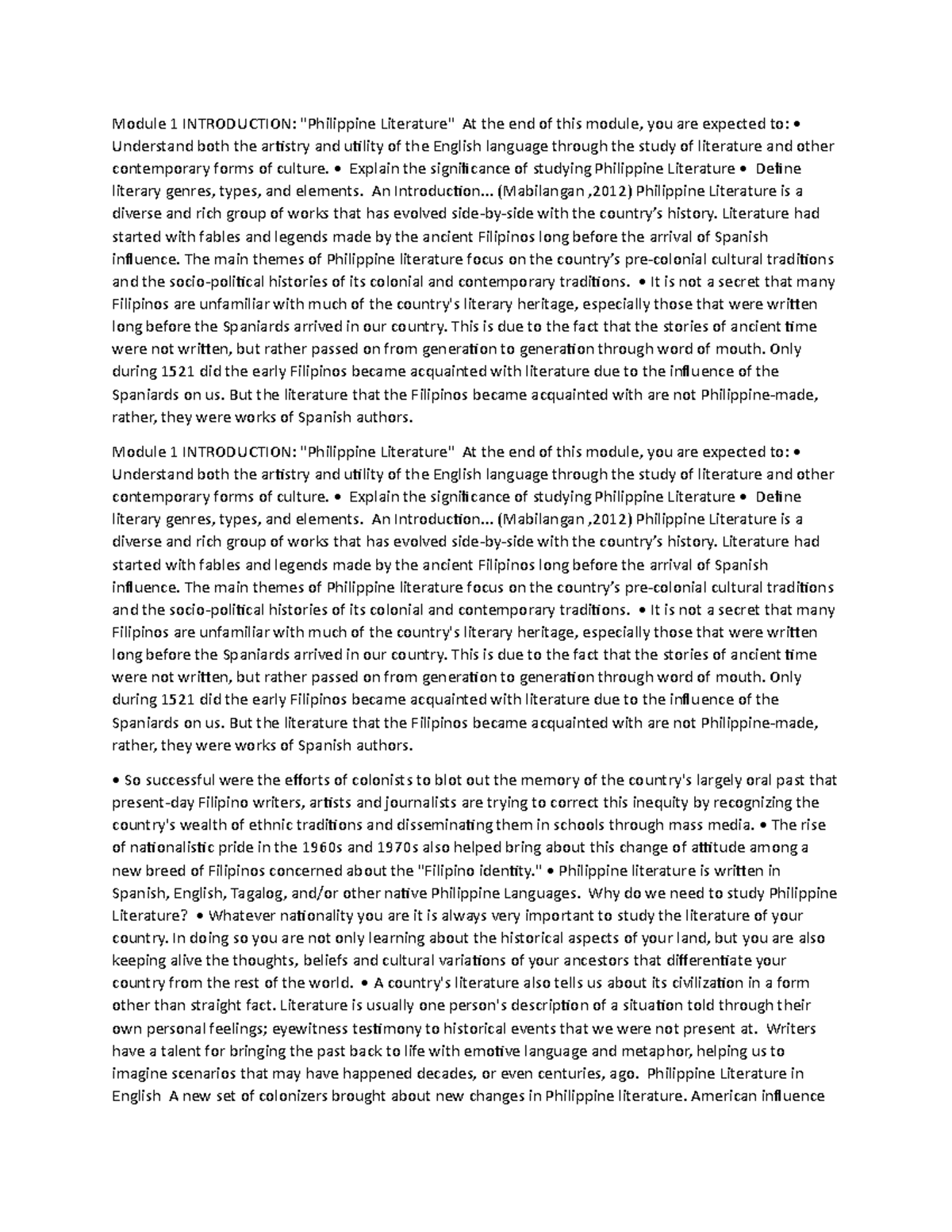 Module 1 - ..................... - Module 1 INTRODUCTION: "Philippine ...