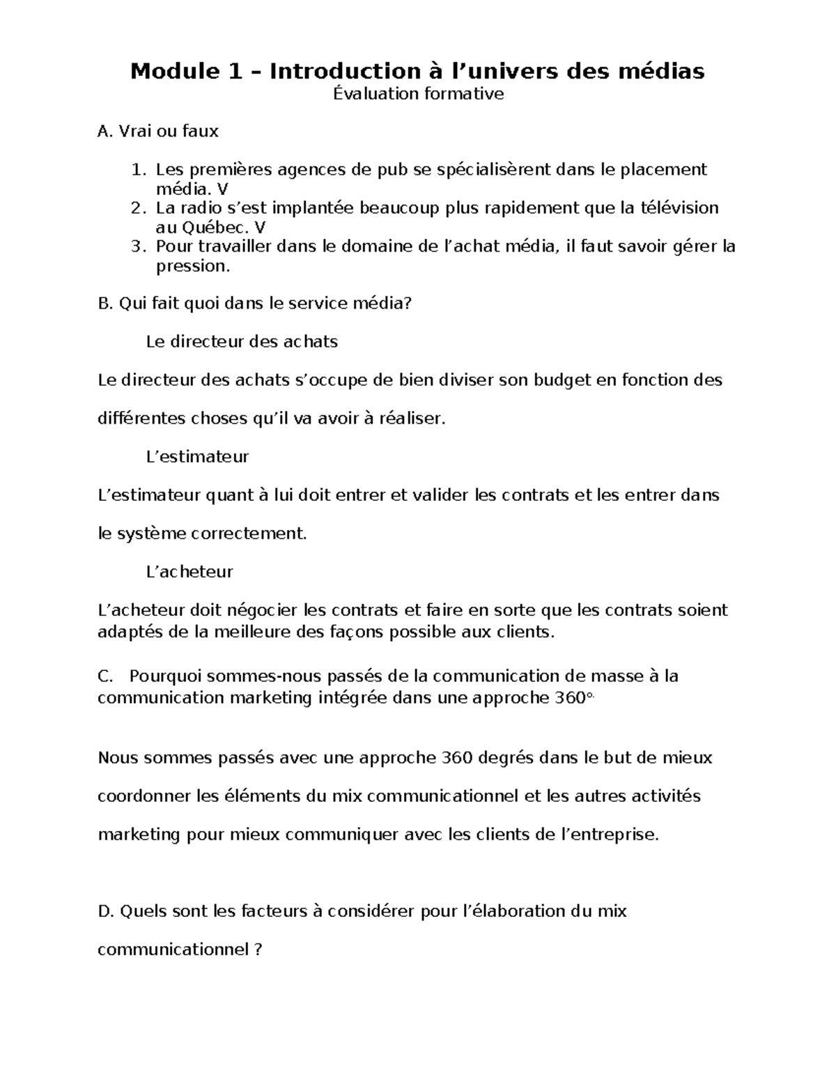 Formatif -Module 1 L’Univers des médias - Module 1 – Introduction à l ...