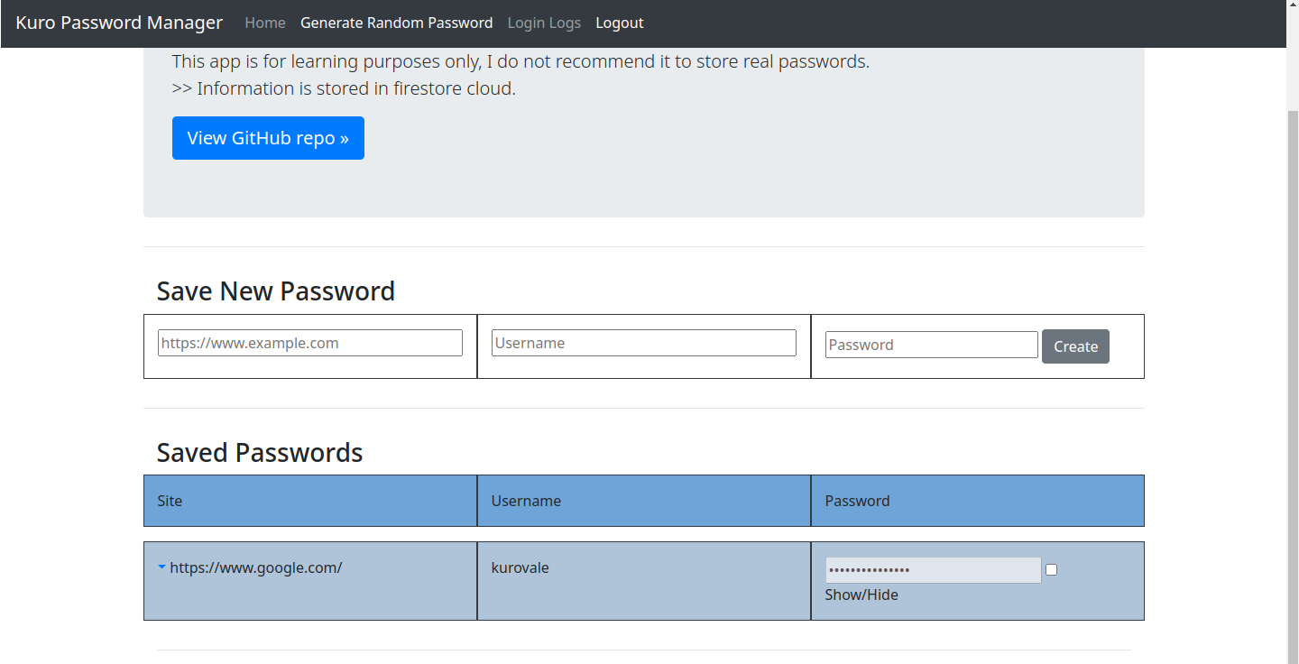 GitHub - aitoyoru/kuro-passwords: Password manager web app made with Flask