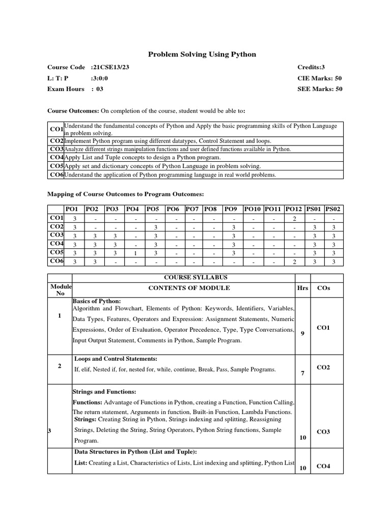 Problem Solving Using Python Syllabus | PDF | Python (Programming ...
