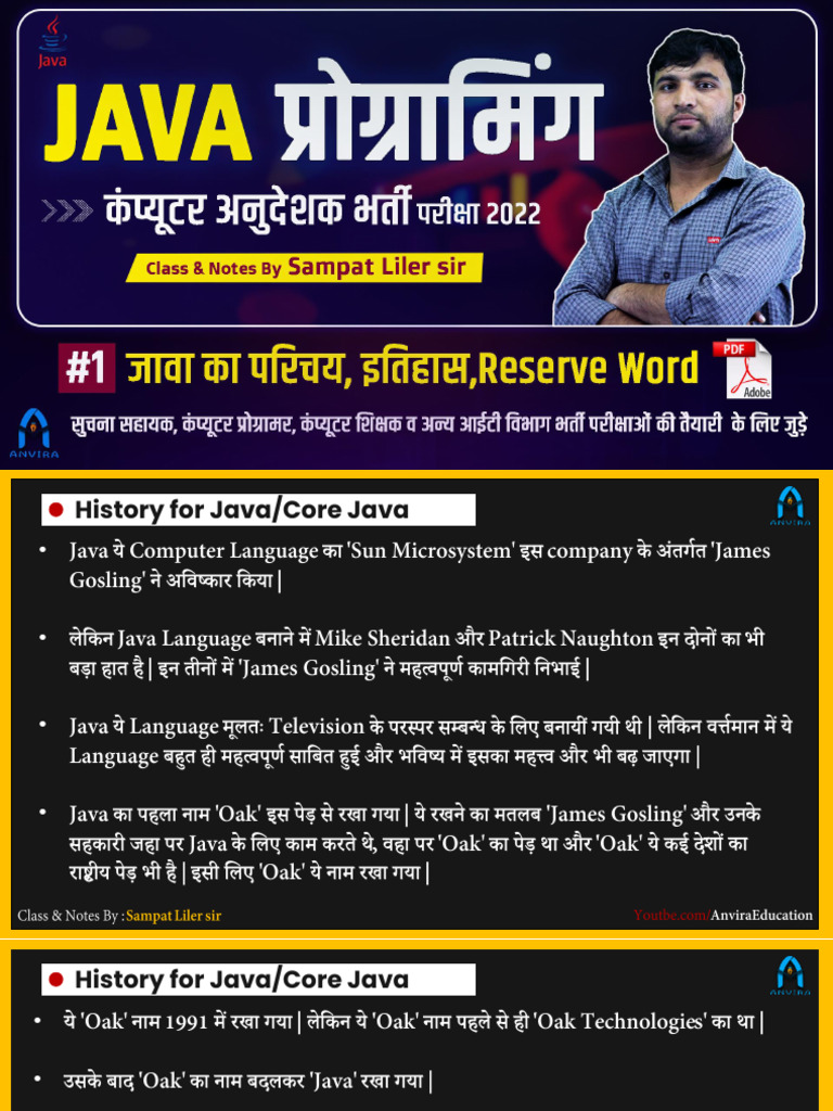 Based on this image's title: “Java Introduction, History and Reserve Word | PDF”