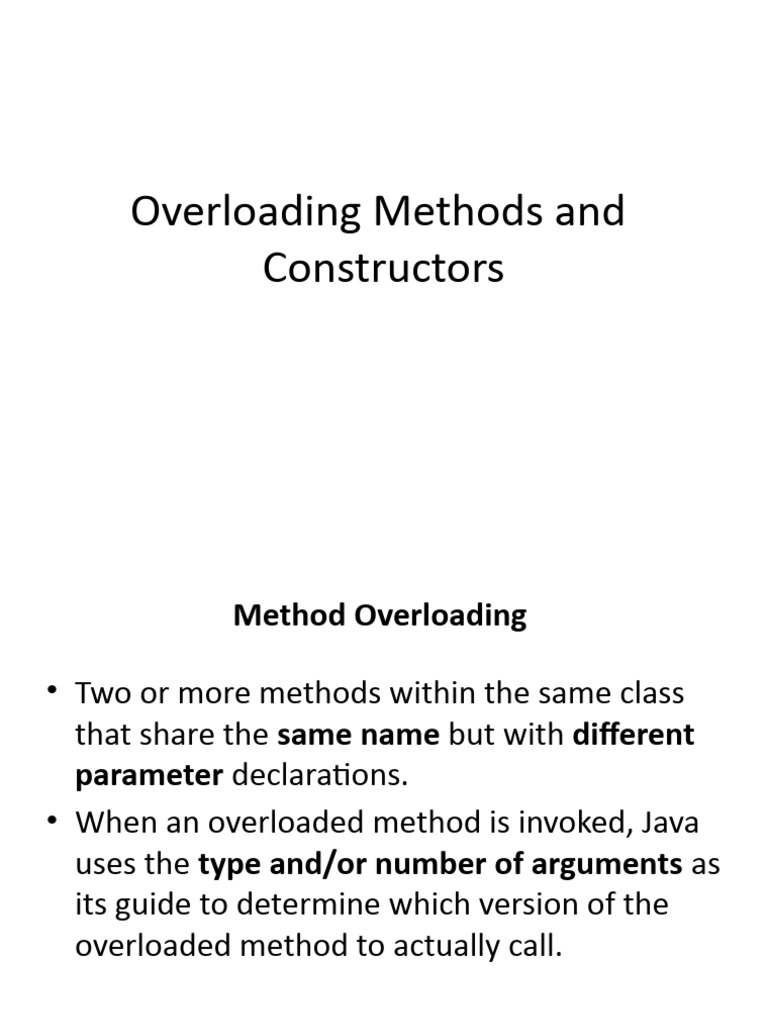 Based on this image's title: “Overloading methods and constructors - Object ortented programming in ...”