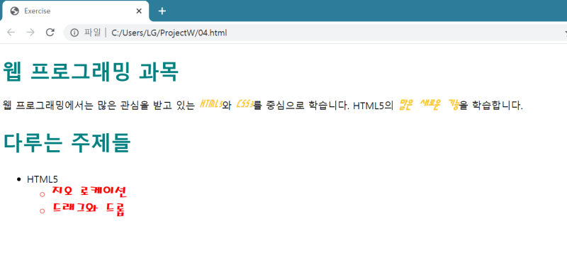 HTML5+CSS3+JavaScript로 배우는 웹프로그래밍 기초(Chapter4 HTML5 CSS3 스타일 시트 기초 연습문제 ...