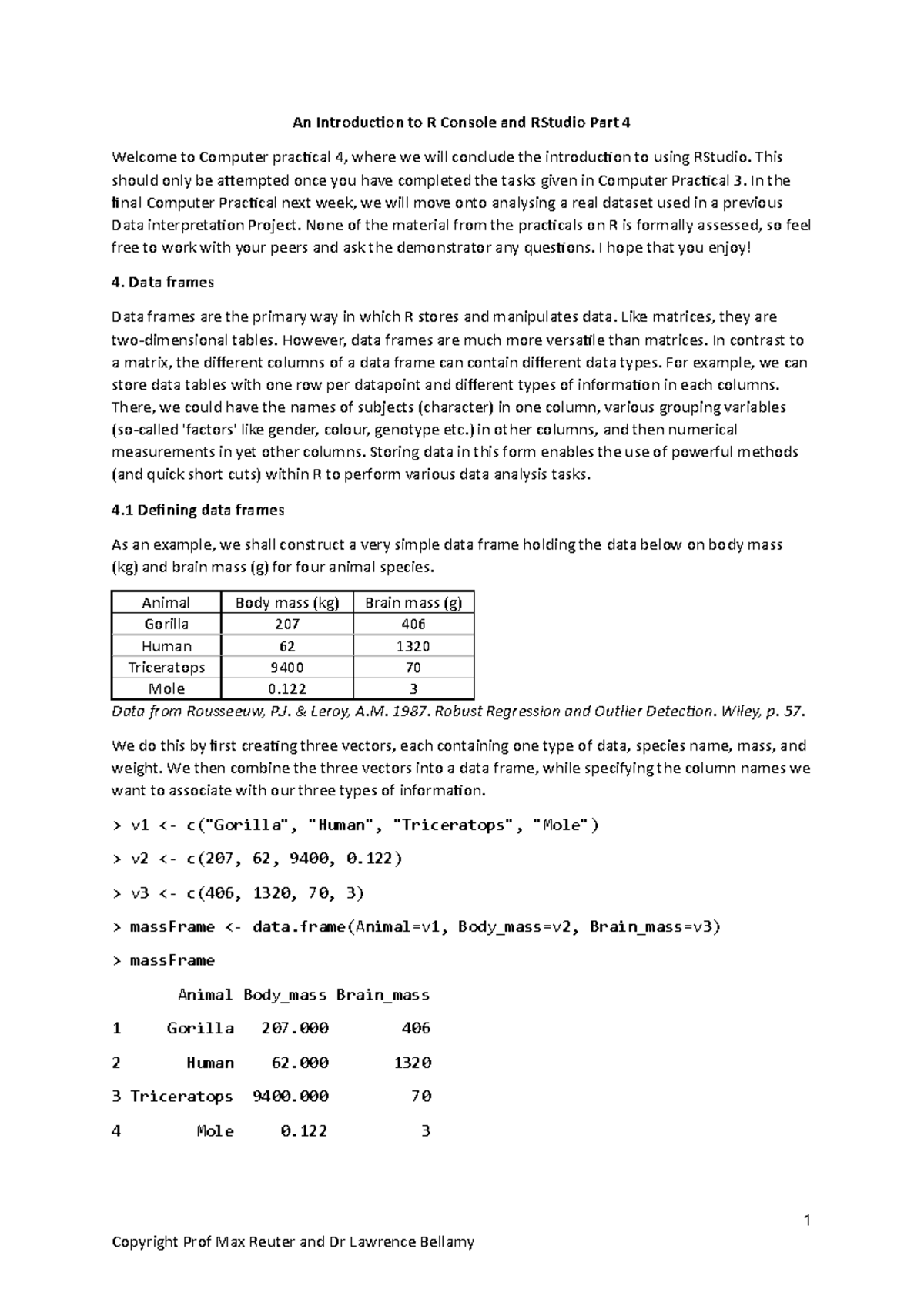 Introduction to R on RStudio Parts 4-6 for BIOL0001 - Studocu