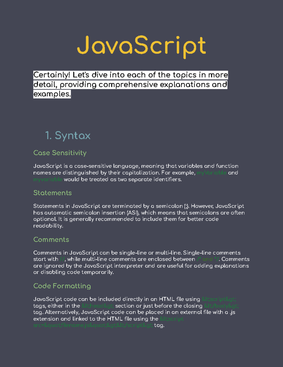 Based on this image's title: “Java Script Notes - JavaScript Certainly! Let's dive into each of the ...”