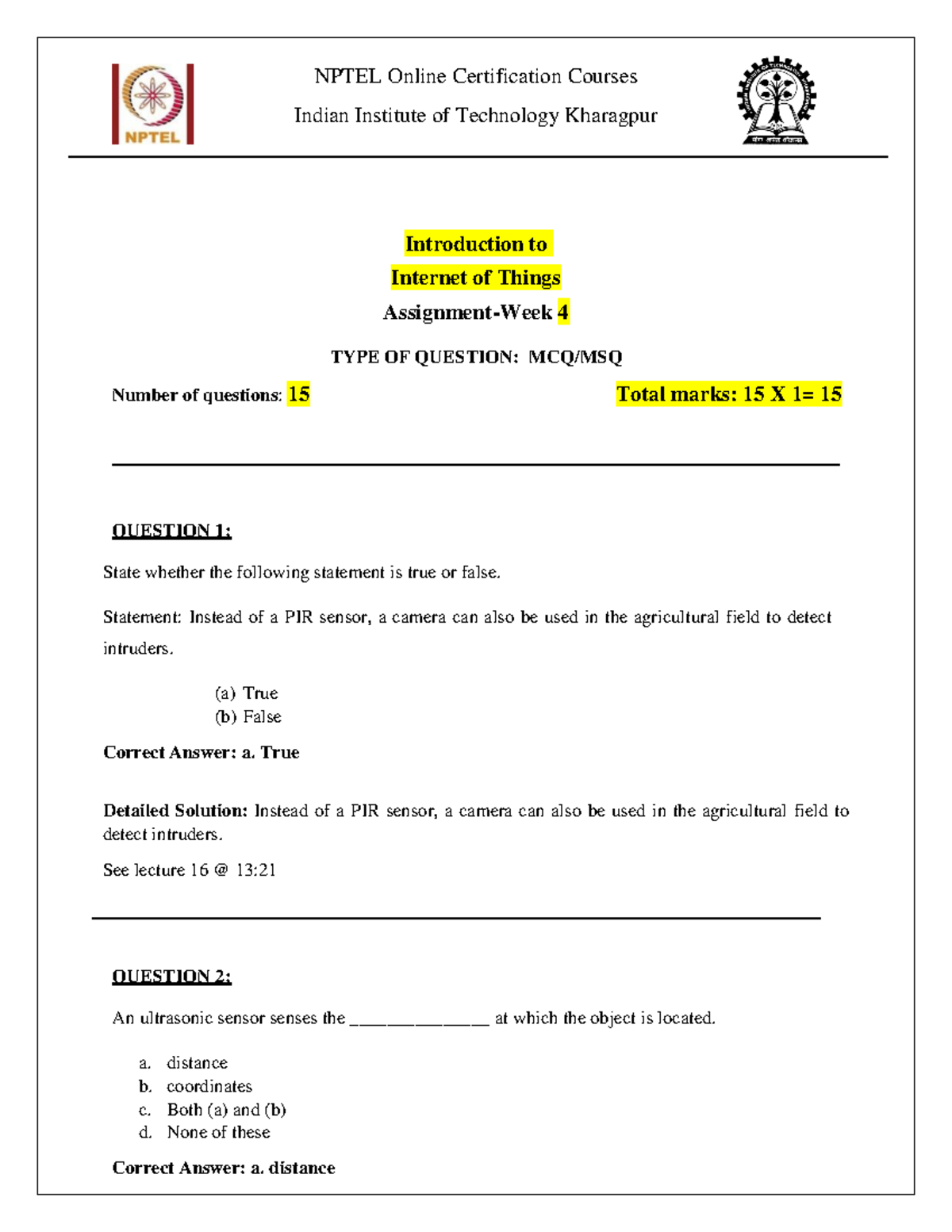 Assignment 4 Solution - Introduction to IoT (NPTEL) - Studocu