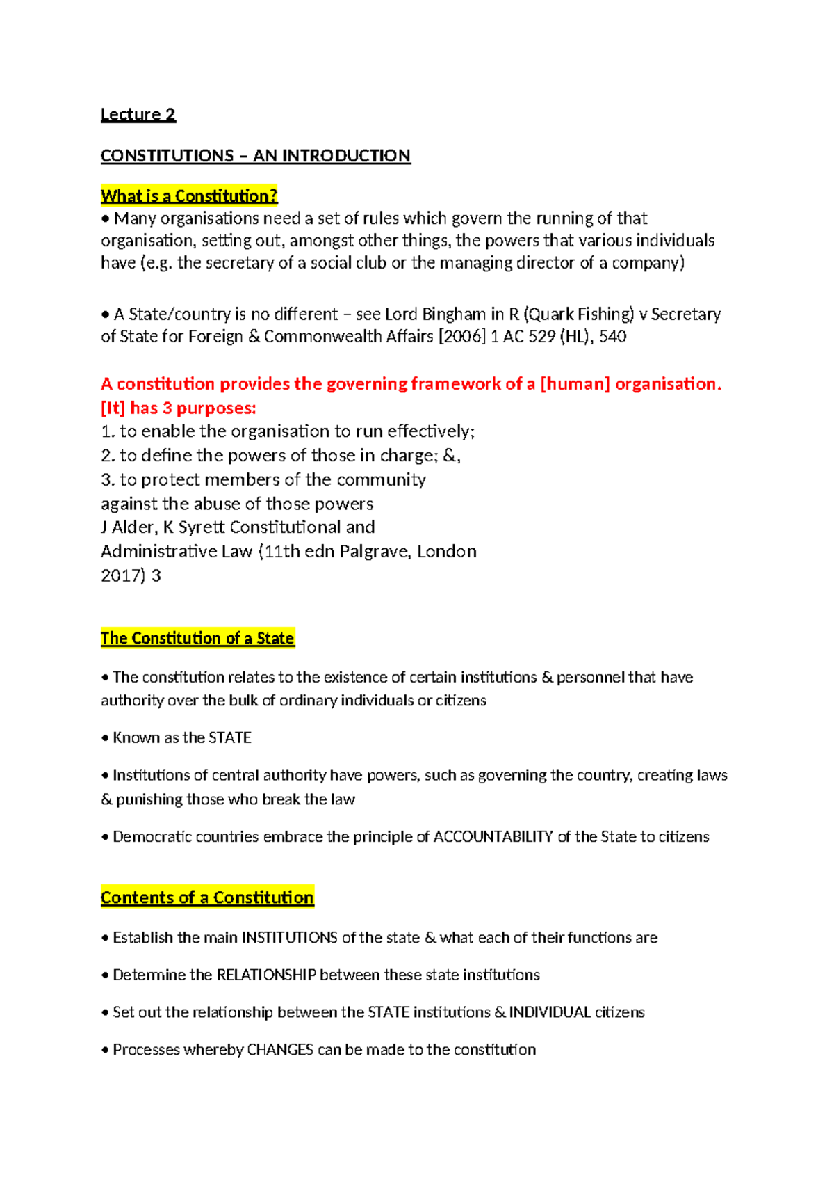 Lecture 2: Introduction to Constitutions and Their Functions - Studocu