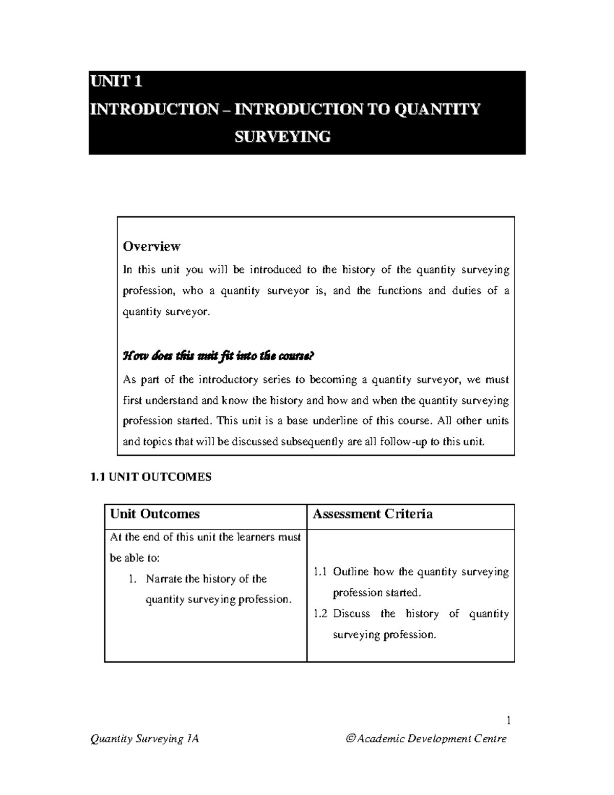 Quantity Surveying 1A: Introduction to Quantity Surveying - Studocu