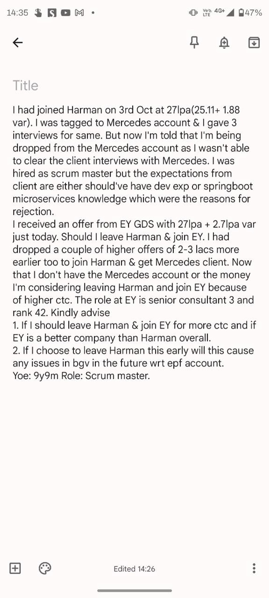 I got interviewed by EY GDS and cleared both rounds but after that no ...