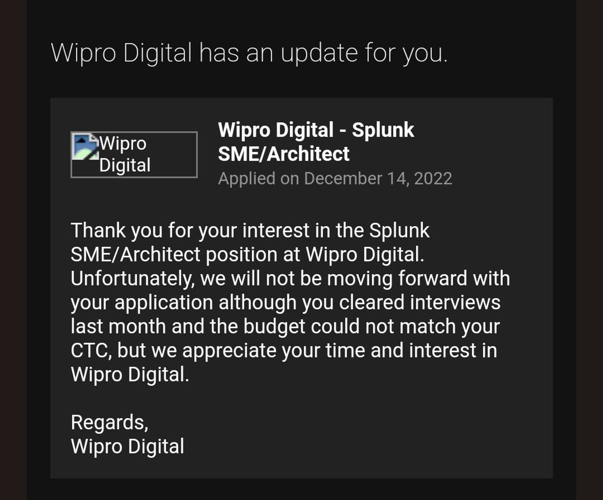 Applied for an HRD role with a very reputable company and was ...