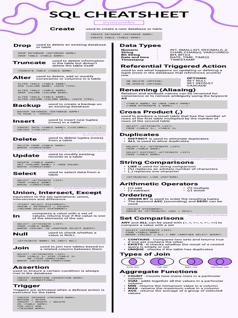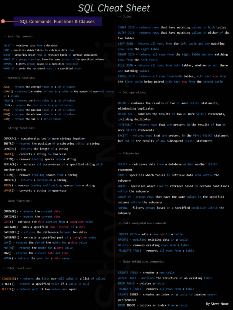 Sql Query Cheat Sheet SQL [cheatsheet] Template By Malavica | Notion
