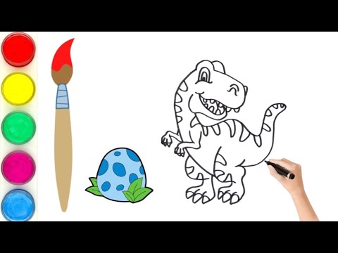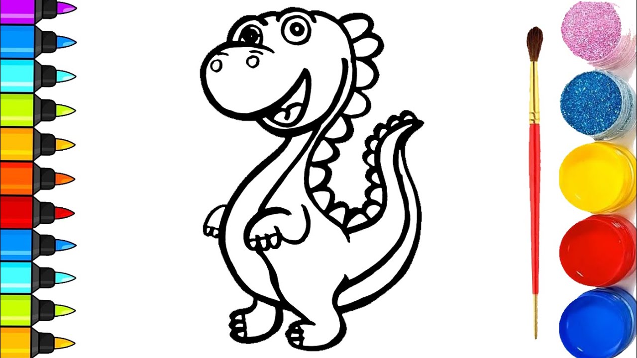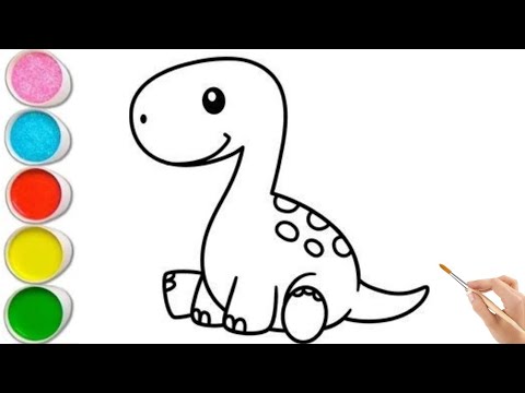 How to draw cute dinosaur - Teaching drawing and coloring for ...
