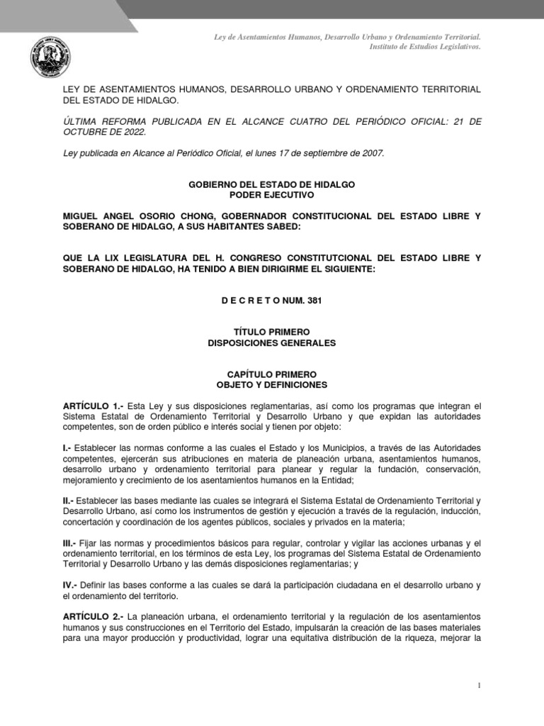 Ley de Asentamientos Humanos, Desarrollo Urbano y Ordenamiento ...
