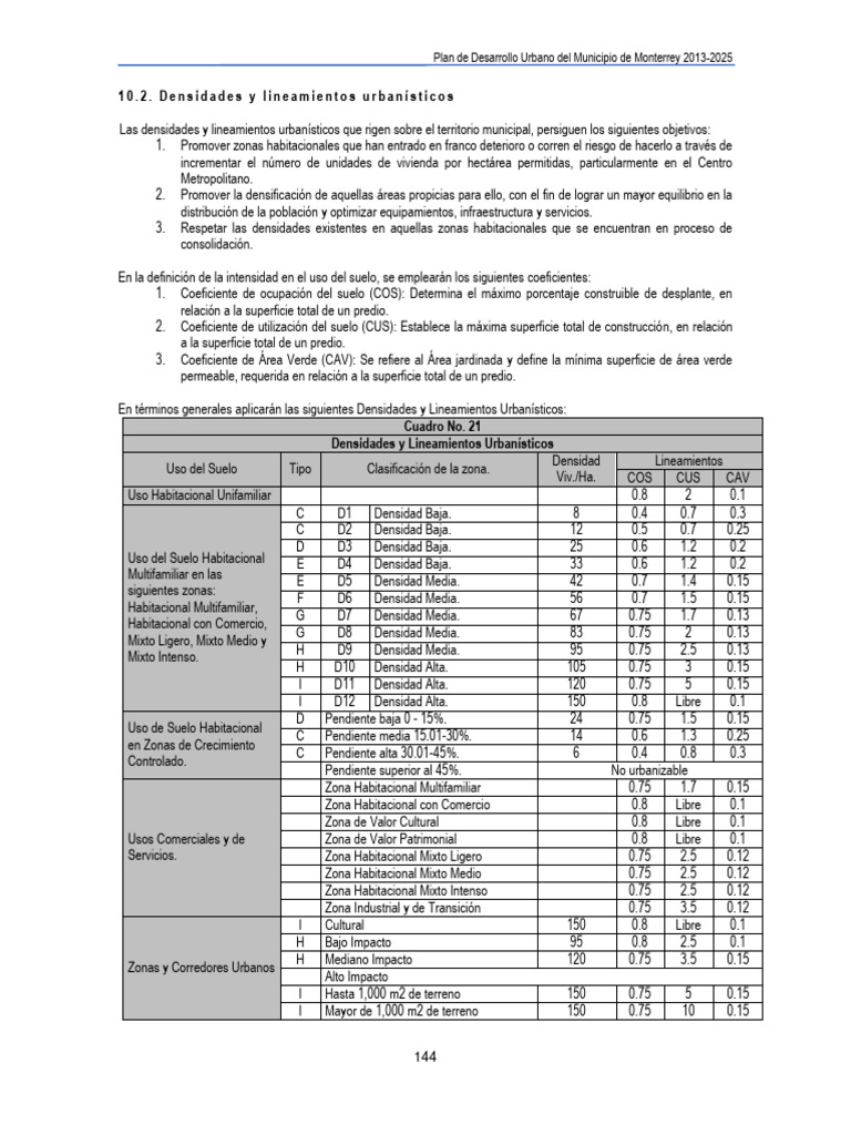 10.2. Densidades y Lineamientos Urbanísticos: Plan de Desarrollo Urbano ...