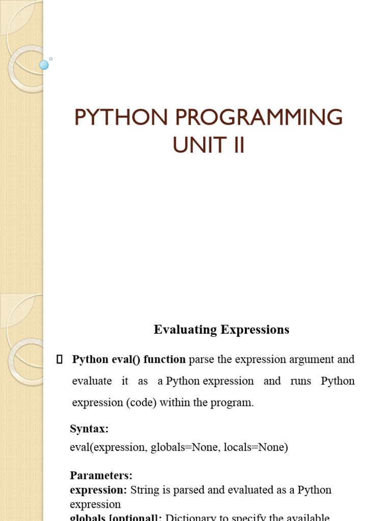 PYTHON PROGRAMMING Unit 2 | PDF | Parameter (Computer Programming ...
