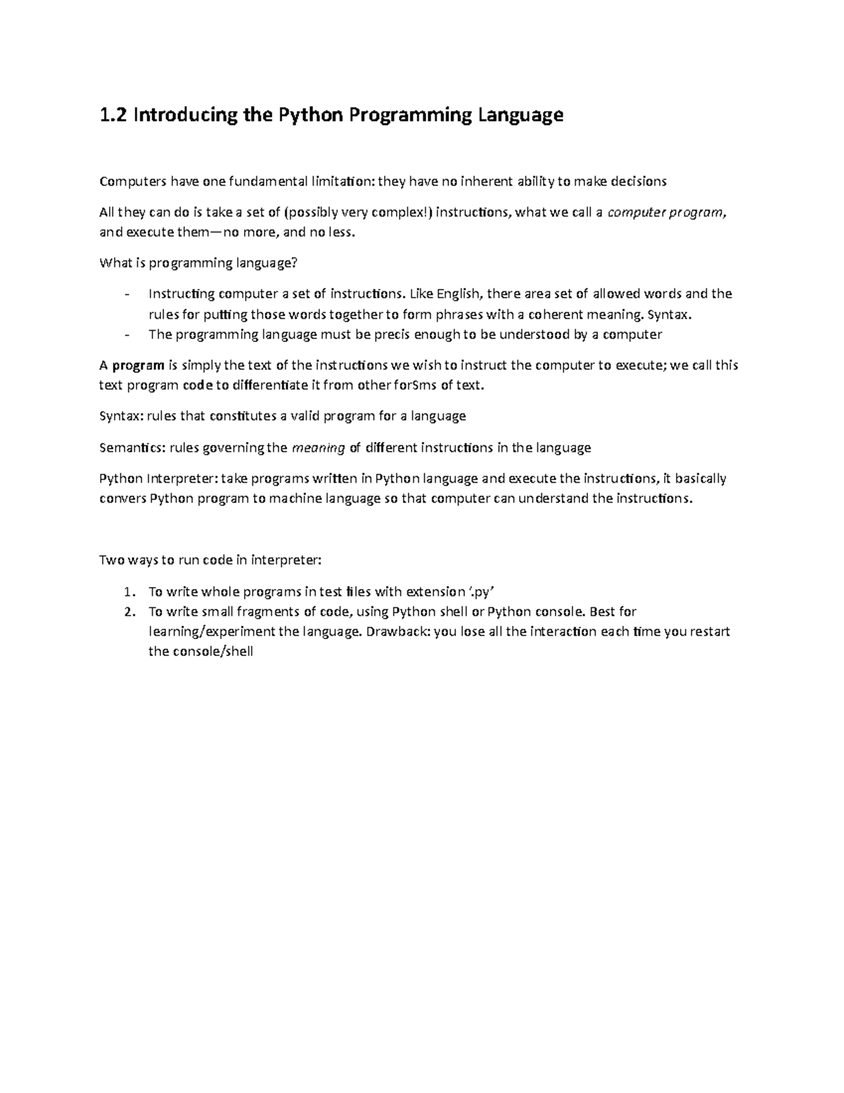 Intro to Python Chapter 1 Notes - Chapter 1 Notes: Introduction to ...
